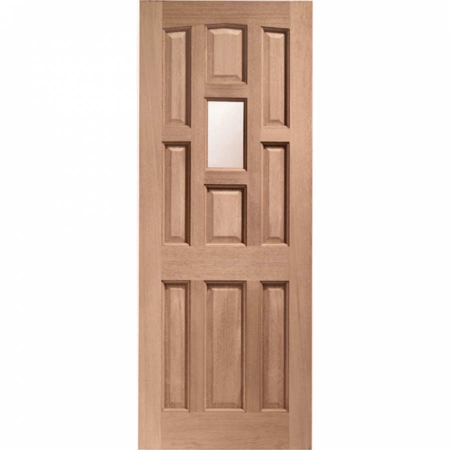 The York Hardwood door has a traditional single obscure glazed pane of glass surrounded by nine raised and fielded feature panels for an added effect. This stylish and bold panelled door will add a touch of elegance to any property and create real kerb appeal.