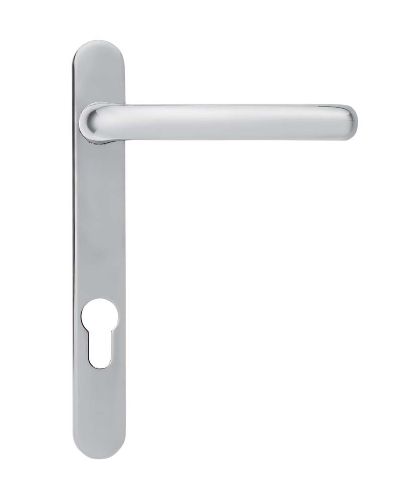 With its solid die-cast construction and heavy-duty spring cassette, the handle is designed to operate a multipoint lock with a Euro cylinder and features screw fixings located below the lever and at the bottom of the backplate to fit locks with a screw hole dimension of 122mm. Thanks to its shorter 28mm wide backplate, it is ideal for new doors and replacing the handles on existing exterior doors.