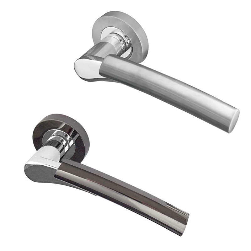 A designer lever featuring either a mixture of polished chrome and black nickel or polished chrome and satin chrome finishes.