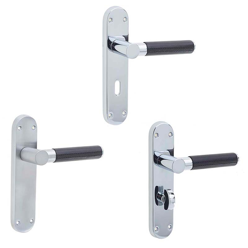 The Ascot Leather Door Handle available in a brown or black leather binding on the lever door handle with visible stitching on a classic and contemporary backplate that has a smooth rounded design. Supplied in pairs complete with spindle and screws. Ascot suite handle Leve... Read More