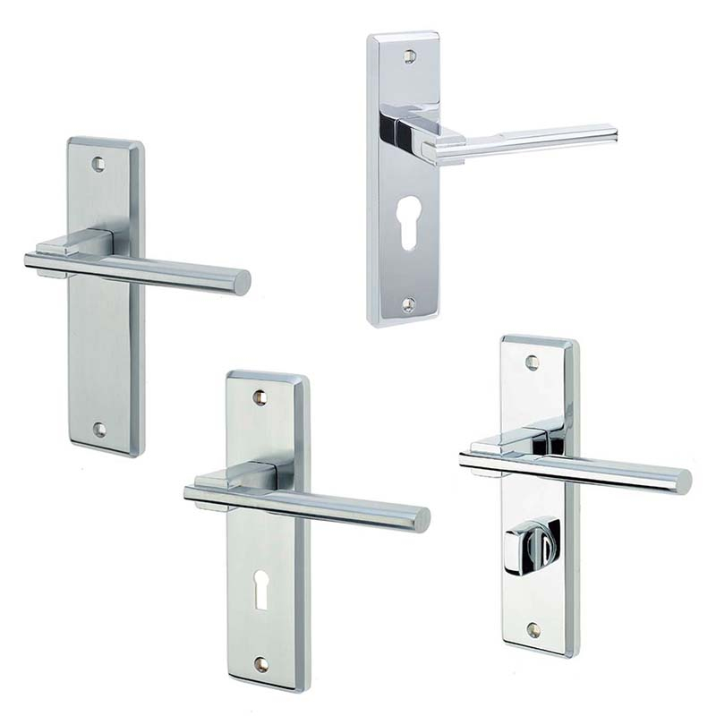 Delta designer door handle on backplate available in latchset, lockset and bathroom set. Supplied as a pair of door handles available in a Satin Chrome or Polished Chrome finish. Available in latch, lock, euro lock and bathroom thumb turn and release designs. Dimensions Bac... Read More
