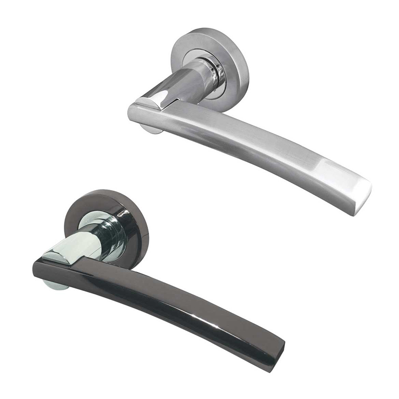The twin finish Modena is a very eye-catching and modern handle. The fixings are concealed by the high quality screw-on rose. Underneath the handle is a grub screw fix to attach the handle to the spindle, which all adds to the quality feel.