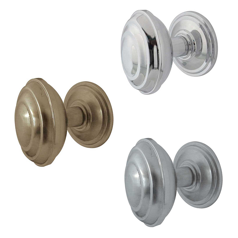 These classic circular-shaped knob, with a tiered design on a round tiered rose are unsprung. If fitting as a mortice knob please ensure you have a double sprung latch to operate the knob.