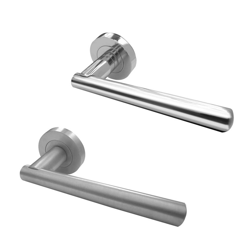 This Frelan Rosetta handle had a contemporary design and is available in two finishes. The fixings are concealed by the high quality screw-on rose. Supplied in pairs complete with spindle and fixings.