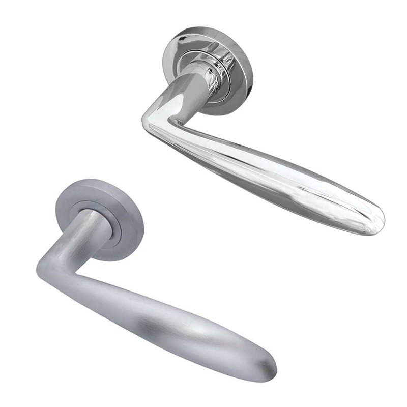 Lever on Rose Handle Contemporary and unique design  Available in a polished or satin chrome finish The fixings are concealed by the high quality screw-on rose Dimensions Lever Length: 120mmRose Diameter: 50mmRose Thickness: 8mm Available finishes Polished Ch... Read More