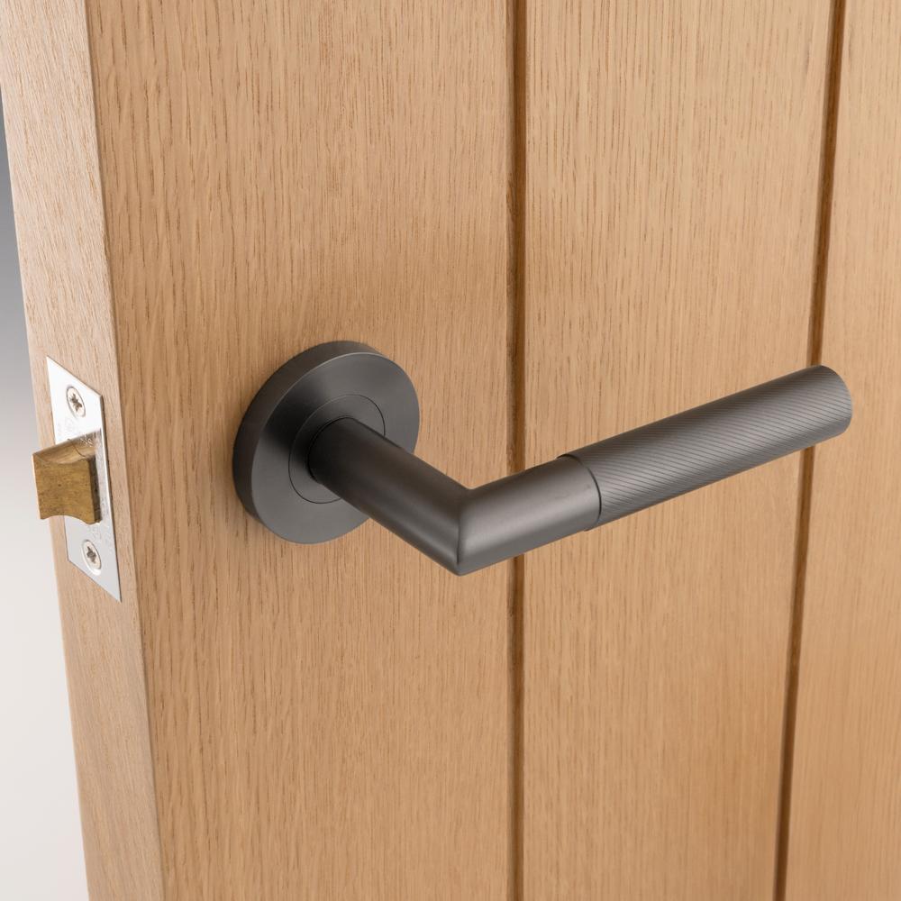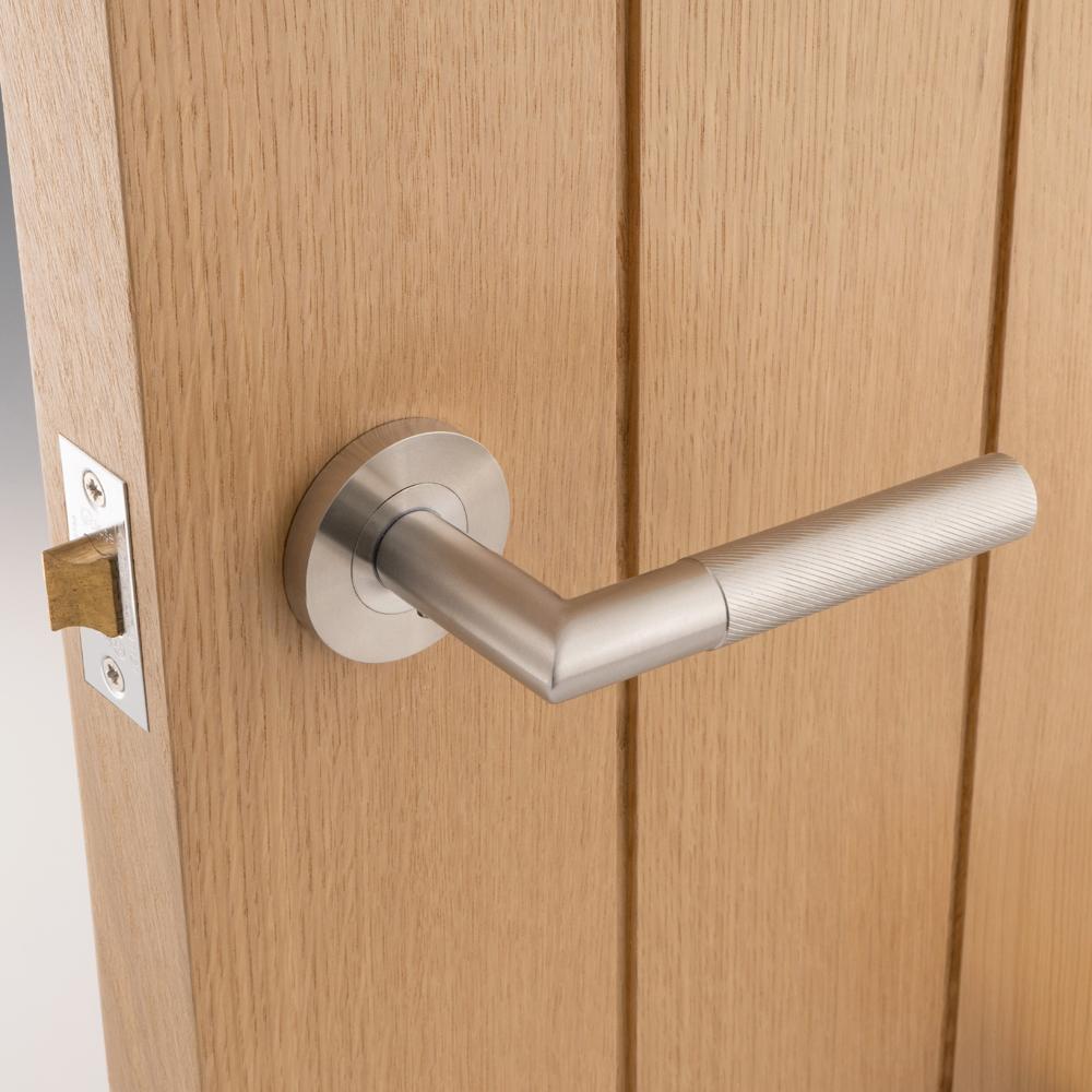Features & Benefits: Frisco Revolved Knurled Lever on Round Rose Door Handle