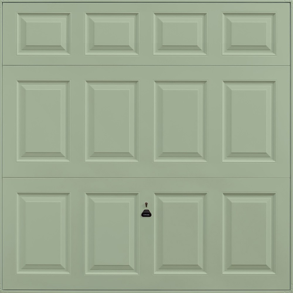 Experience easy operation with the Garador Beaumont Framed Chartwell Green Canopy Garage Door. The powerful overhead spring ensures smooth opening and closing. Constructed from premium Chartwell Green steel with a heavy-duty chassis and white sub-frame, it enhances visual appeal and security. Complete with a sleek black handle, locks, and fixings, it's fully equipped for convenient installation. The factory-fitted frame ensures efficient installation, saving you time and effort. Elevate your home's curbside appeal with this stylish and functional garage door.