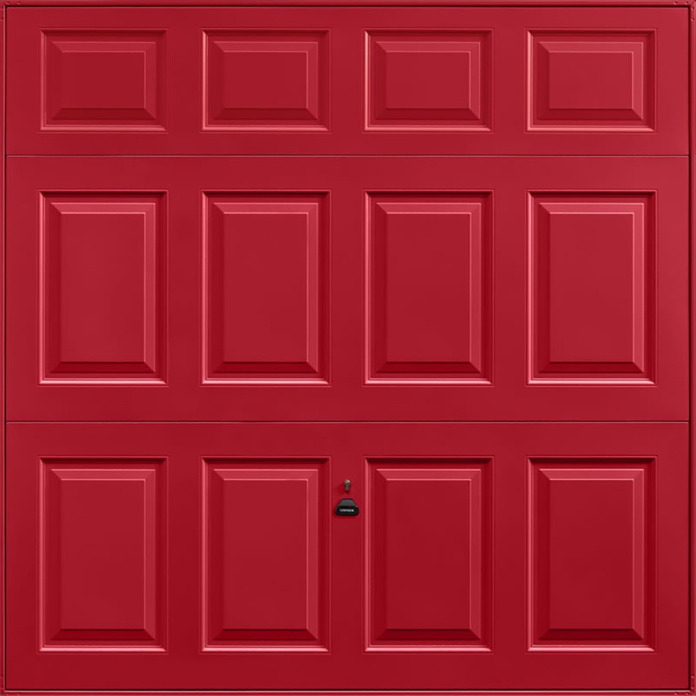 Experience easy operation with the Garador Beaumont Framed Ruby Red Canopy Garage Door. The powerful overhead spring ensures smooth opening and closing. Constructed from premium Ruby Red steel with a heavy-duty chassis and white sub-frame, it enhances visual appeal and security. Complete with a sleek black handle, locks, and fixings, it's fully equipped for convenient installation. The factory-fitted frame ensures efficient installation, saving you time and effort. Elevate your home's curbside appeal with this stylish and functional garage door.