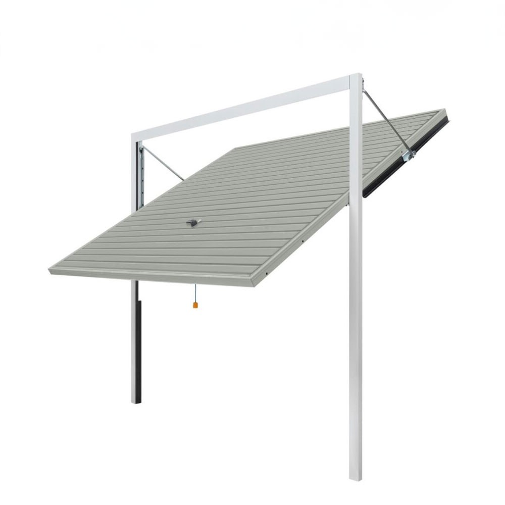 The canopy action, driven by a powerful overhead spring, ensures effortless operation and straightforward installation. Crafted from premium Agate Grey (RAL 7038) steel panel and featuring a heavy-duty steel chassis with a white steel sub-frame, this garage door combines strength with elegance.