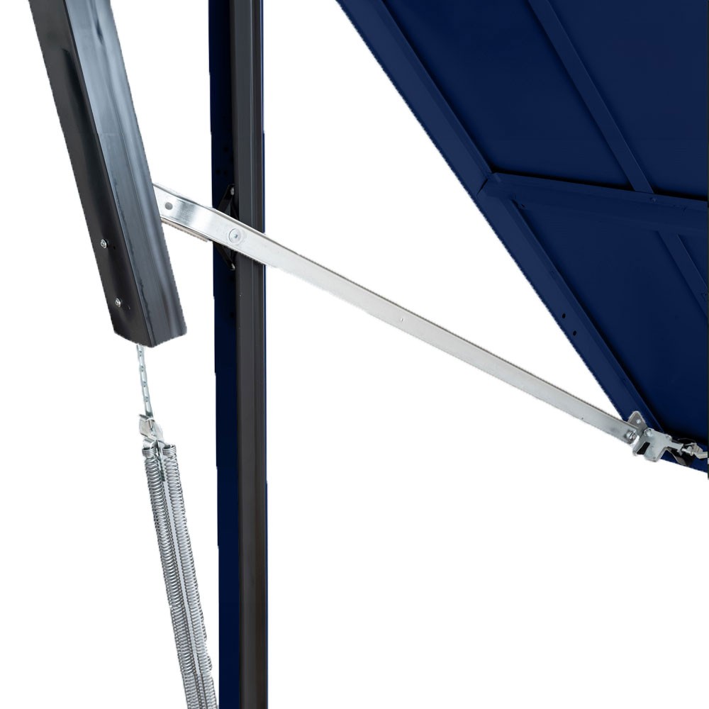 The retractable action, assisted by side springs, ensures effortless operation and straightforward installation. Crafted from premium Steel Blue (RAL 5011) steel panel and featuring a heavy-duty steel chassis with a white steel sub-frame, this garage door combines strength with elegance.