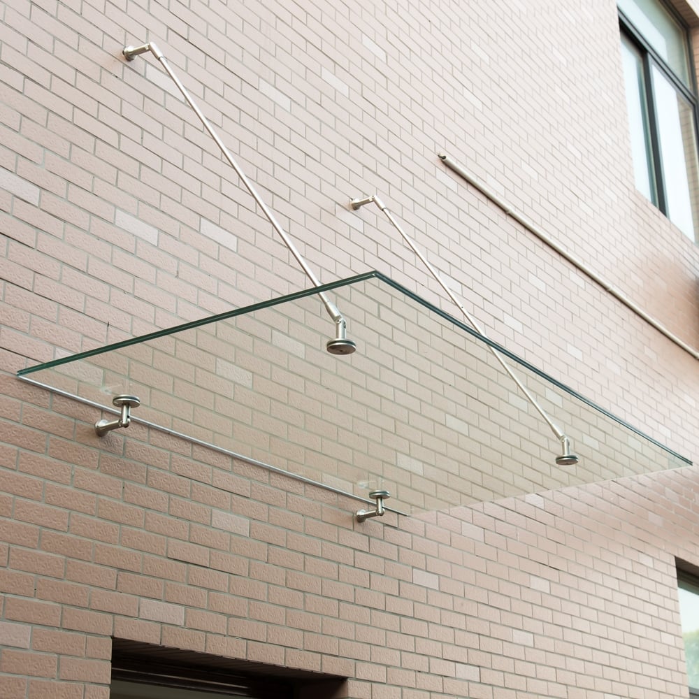 Product Summary MATERIAL: Glass and Stainless Steel TYPE: Glazed door canopy STYLE: Modern flat awning design FINISH: Clear laminated glass FIXINGS: Grade 304 Brushed Stainless Steel brackets, wall anchor fixings and hex keys included ADDITIONAL FEATURES: CE rated ... Read More