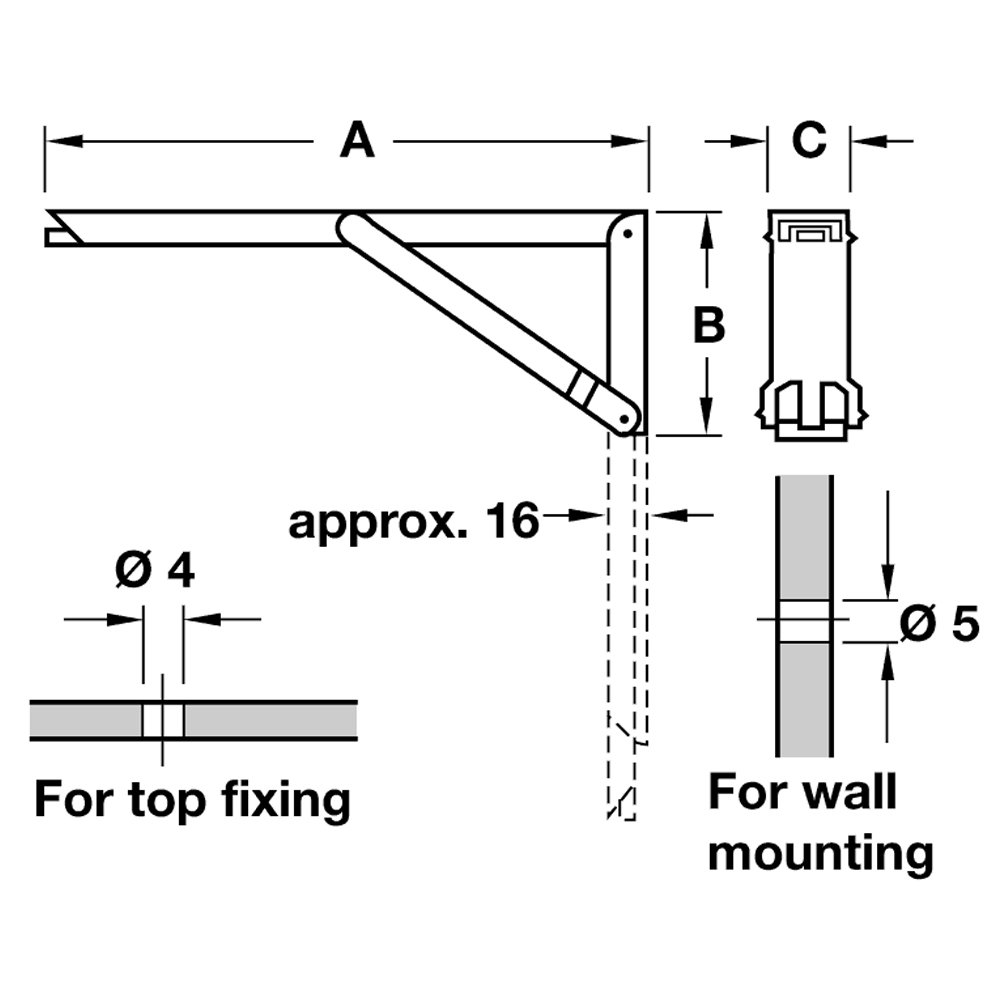 MATERIAL: SteelTYPE: hinged shelf bracketSTYLE: Wall mounted Description A fantastic innovative space saving solution! If you are short of space in any room, and need a surface that folds away, these folding hinges are the perfect answer. Suitable for tables, worktops, bench... Read More