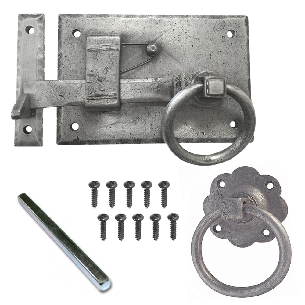 MATERIAL:IronTYPE:Heavyweight ring pull gate latchSTYLE:Hand forgedFINISH:PewterFIXINGS:40mm wood screws included Description   Simple traditional ring design gate latch mechanism to allow easy access and locking Available in a left or right handed configuration Pa... Read More