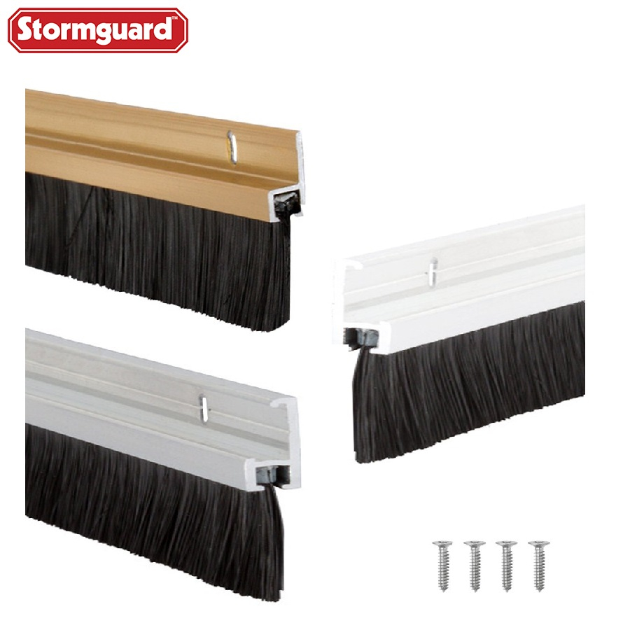 This product comes with a high-quality polypropylene brush in a strong, flexible aluminium carrier. It can be purchased in three finishes - aluminium, gold or white - and can seal gaps of up to 25mm beneath the door (white strip is suitable for up to 25mm). Easy to install with the pre-drilled fixing holes and 20mm plated wood screws, it comes with a 2-year manufacturer guarantee.