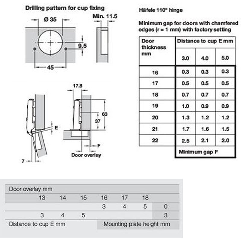 DRILLING DIAMETER FOR HINGE CUP:35mm