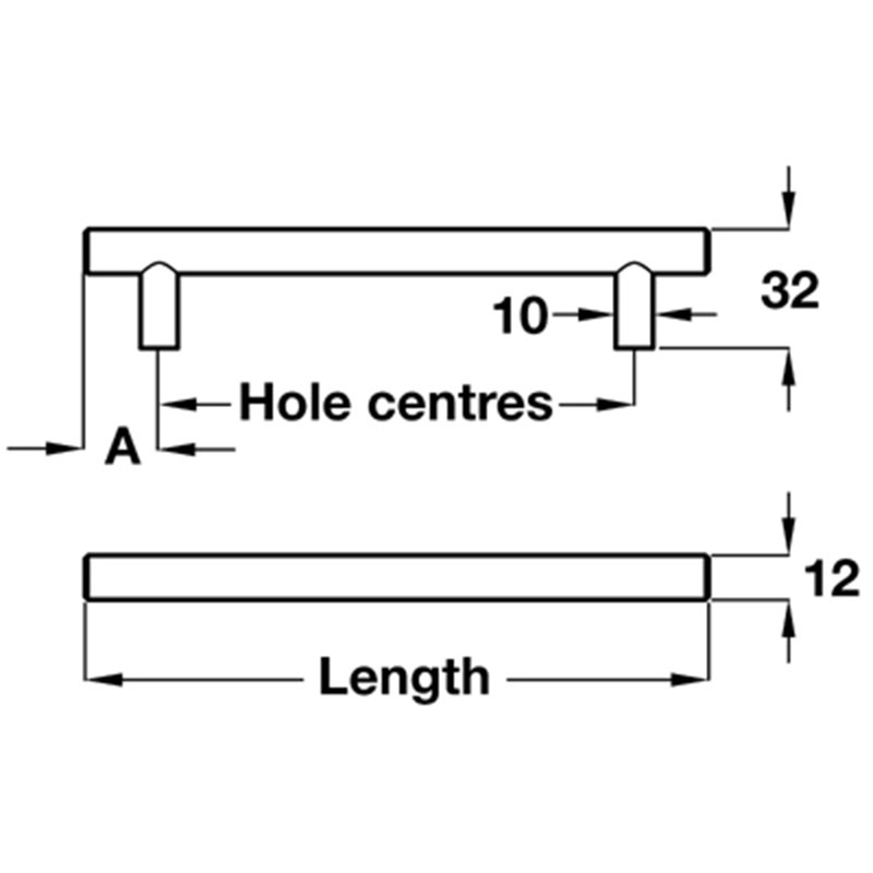 HANDLE LENGTH - HOLE CENTRES (Dimension A - Edge of bar to hole centre)