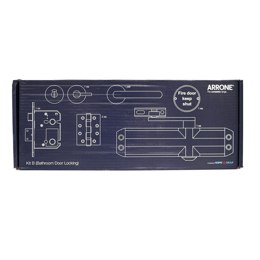 The Hoppe ARRONE Bathroom locking Fire door kit contains everything you need for protection and peace of mind. The Fully certified ironmongery is tested to both European and UK fire safety standards, this kit is a simple, readymade and a quick step to safety and security. With an FD30 fire rating, you are guaranteed at least 30 minutes of protection against fires, ensuring the protection and safety of your staff and property.