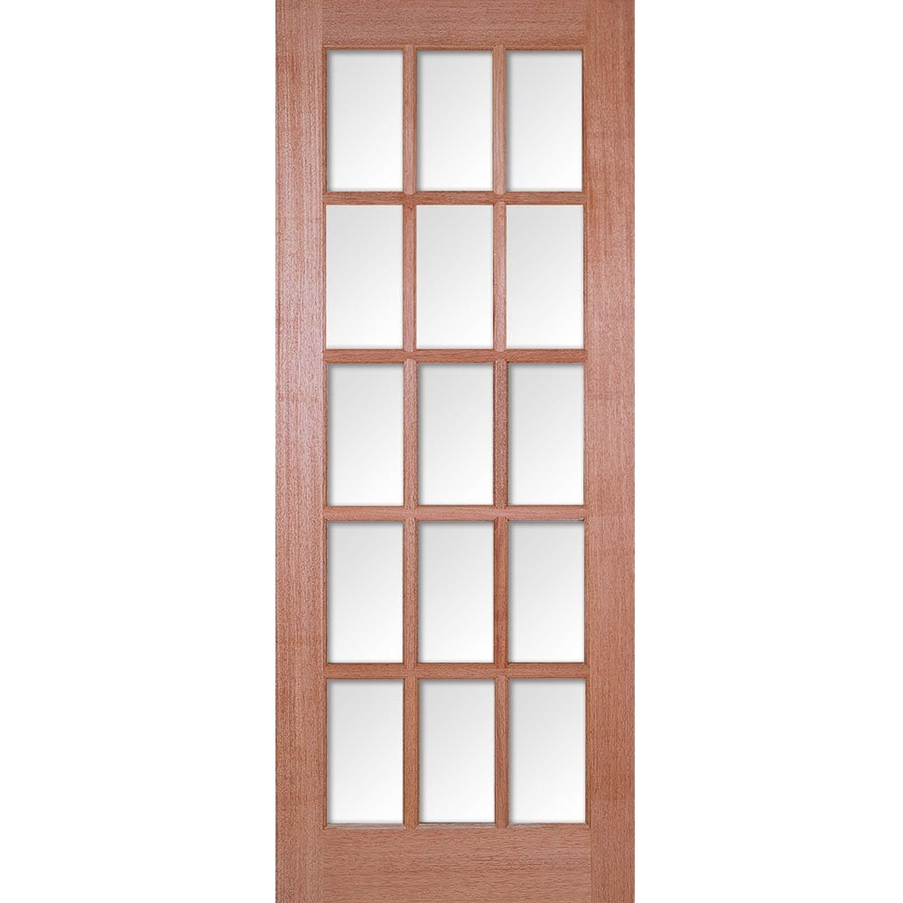 15 clear bevelled glazed panels are framed by a handsome Hardwood material for this practical internal door design.