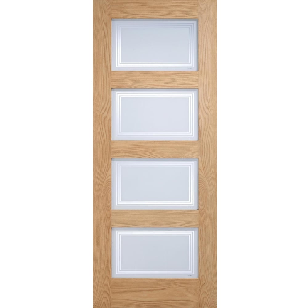 LPD Internal Oak CONTEMPORARY 4 Light Frosted Clear Lines Glazed Door
