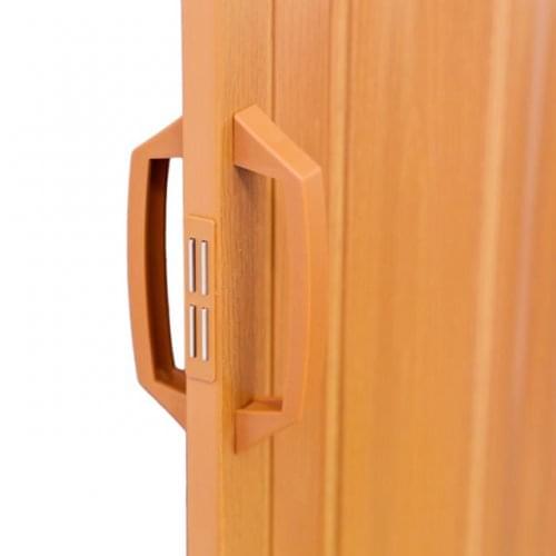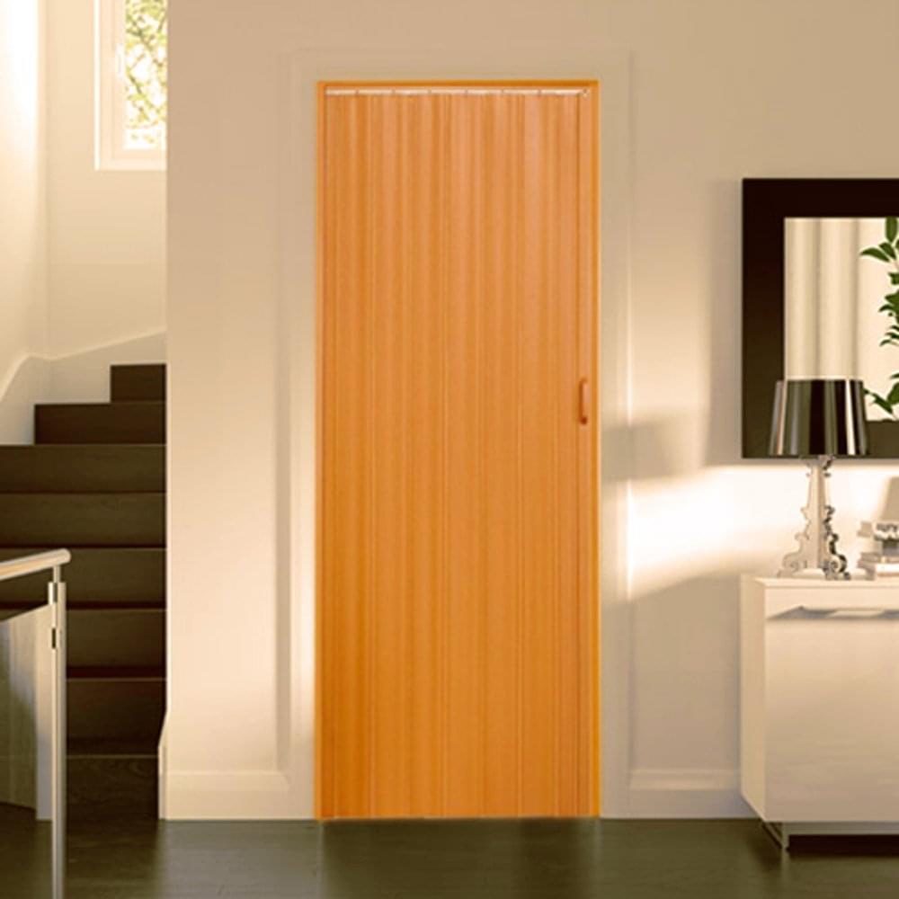 This versatile concertina folding door is made from high quality PVC plastic and the panels are in an oak effect finish. Folding accordion style makes it suitable for most internal door widths.