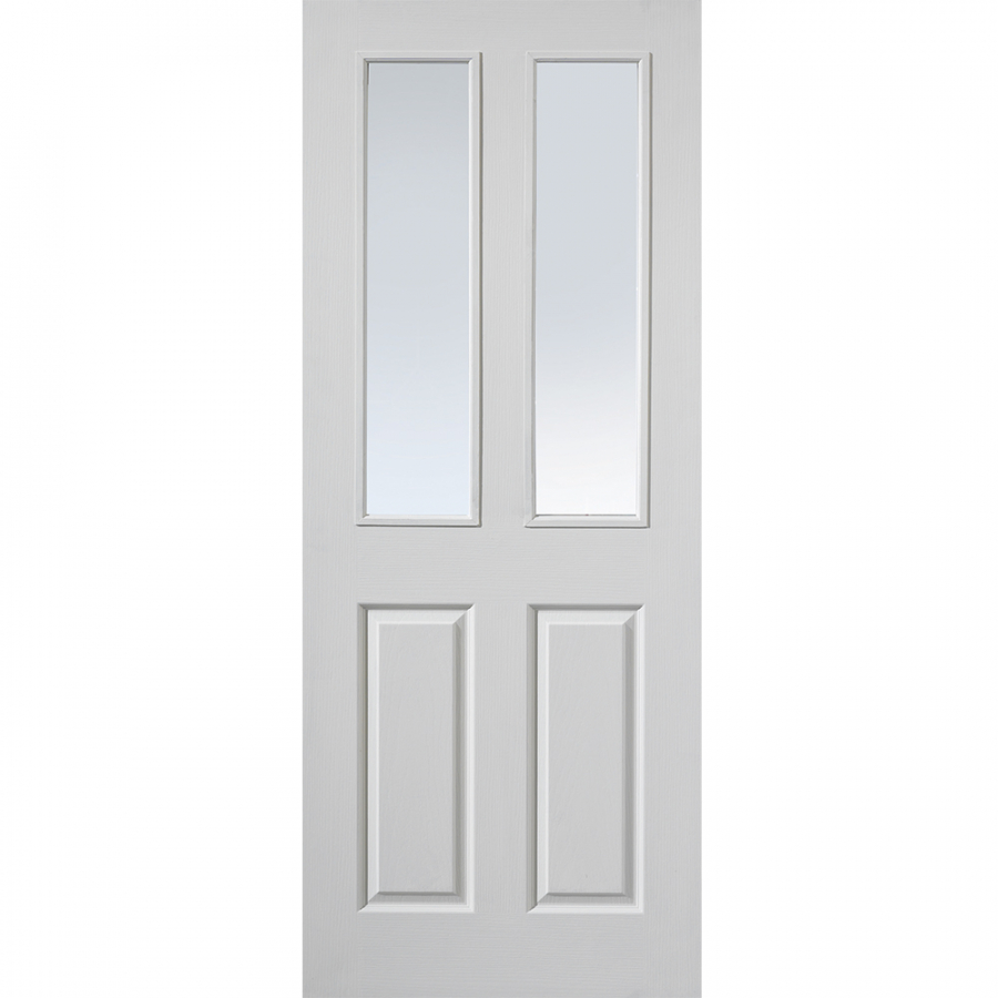 Features & Benefits: JB Kind Canterbury Moulded Grained White Primed Etched Glazed Internal Door