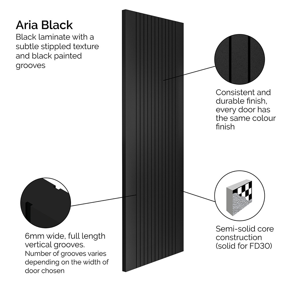 Features & Benefits: JB Kind Aria Fluted Black Laminate Internal Door - 1981mm x 762mm (78 inch x 30 inch)