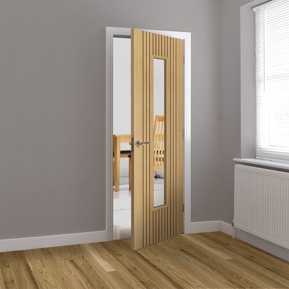 Features & Benefits: JB Kind Aria Fluted Oak Laminate 1 Light Clear Glass Internal Door