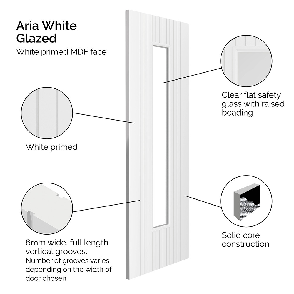 Features & Benefits: JB Kind Aria Fluted White Primed 1 Light Clear Glass Internal Door