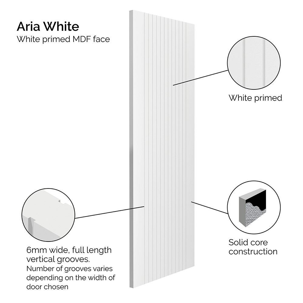 Features & Benefits: JB Kind Aria Fluted White Primed Oak Internal Door - 1981mm x 762mm (78 inch x 30 inch)