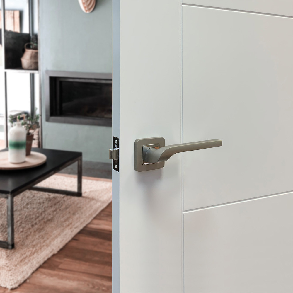 • Features a stunning satin light grey finish that will blend effortlessly with white and grey contemporary door designs