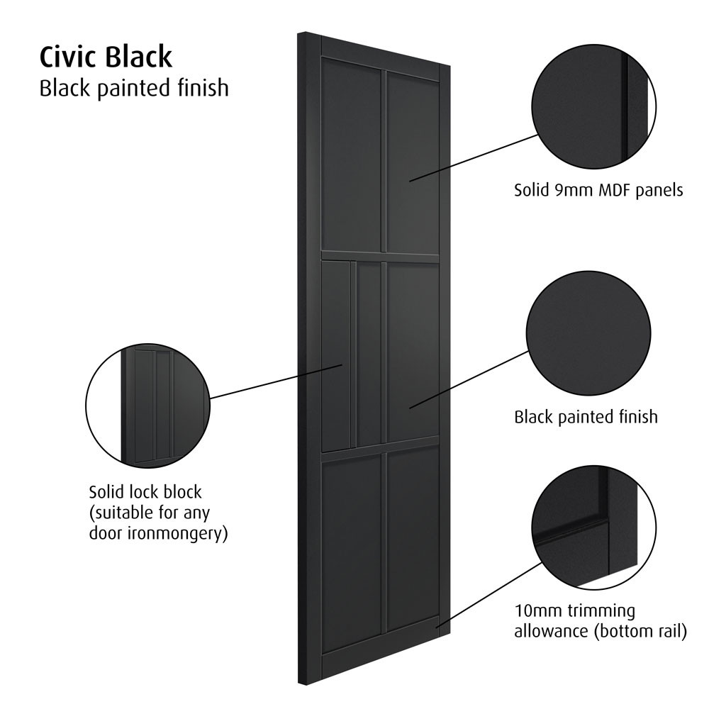 Features & Benefits: JB Kind Civic Urban Industrial Fully Finished Black Internal Door