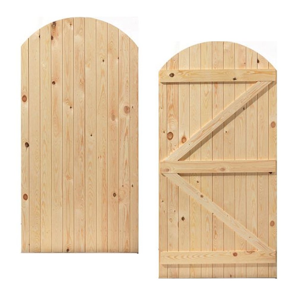 • An external traditional boarded cottage style garden gate with arched topFully ledged and braced softwood door with 'arrowhead' formation on the rear of the door