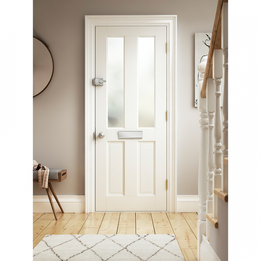 Pre-finished in white. Suitable to over paint if desired.|Primed External doors arrive with a base coat of primer already applied. The primed door is a blank canvas ready to be painted with the top coat of your choice.|Be sure to select a finisher with a lasting seal between component parts. Please avoid water based finishers, using only good quality solvent based finishers. Danish oil is not suitable for use on any of our doors.