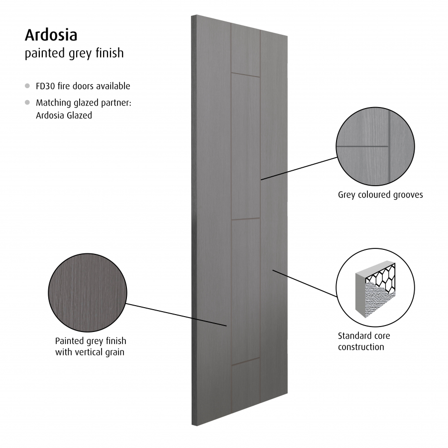 Features & Benefits: DISCON - JB Kind Ardosia Fully Finished Grey Internal Door