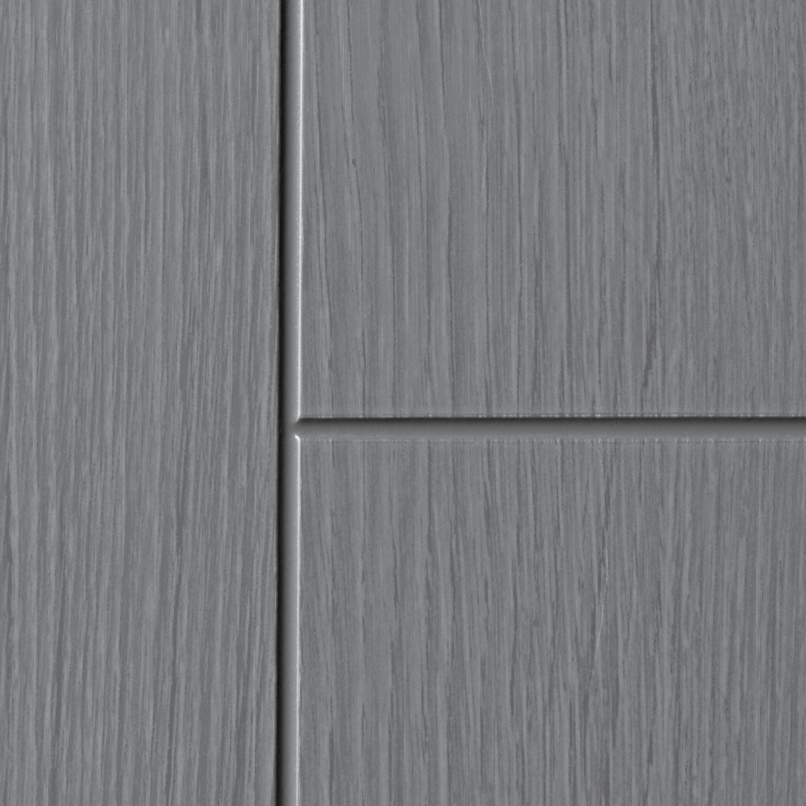 The Ardosia door range from JB Kind features this stylish FD30 fire door with a vertical timber graining effect. Each door within this designer range is completely unique. This contemporary modern door comes in a grey colour fully finished. A dynamic design choice for any contemporary setting.