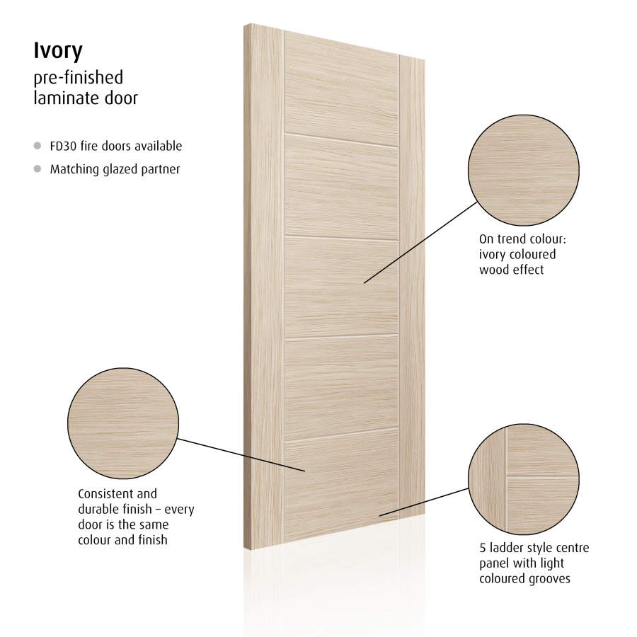Features & Benefits: JB Kind Tigris Ivory Panel Fully Finished Internal FD30 Fire Door