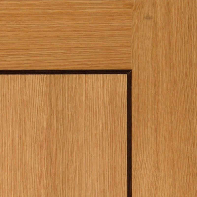 The FD30 fire door in the Clementine door range from JB Kind showcases an inlay that adds a beautiful detail to this iconic style door. This oak door is delivered fully finished. This contemporary styled oak door will bring a bold style choice into your home.