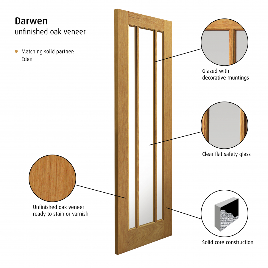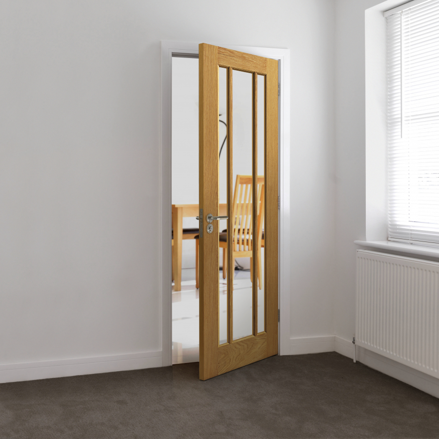 Features & Benefits: JB Kind Darwen Unfinished Oak 3 Light Clear Glass Internal Door