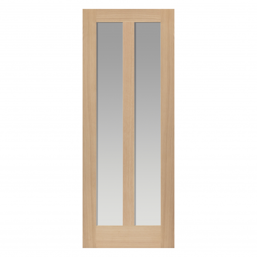 Features & Benefits: DISCON - JB Kind Matterhorn Unfinished Oak 2 Light Clear Glass Internal Door - 1981mm x 762mm (78 inch x 30 inch)