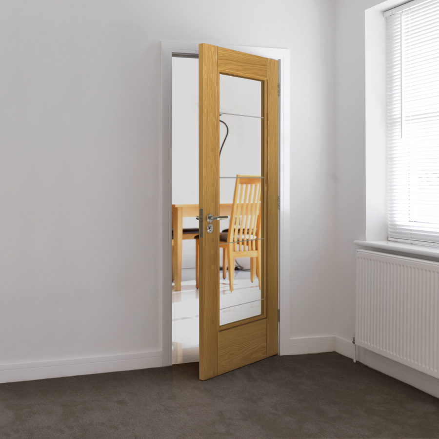 Features & Benefits: JB Kind Medina Fully Finished Oak 1 Light Clear Glass Internal Door