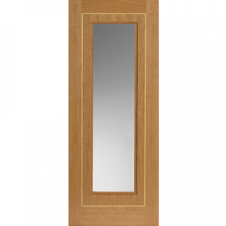 The Minerva range collection of doors by JB Kind has a contemporary style with a clear glass panel and raised beading to bring style and light into your interior. This bevelled glazed oak door is delivered fully finished. The contemporary style of this door makes it a perfect choice for on-trend interiors.