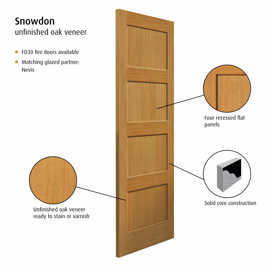 Features & Benefits: JB Kind Snowdon Shaker 4 Panel Unfinished Oak Internal FD30 Fire Door