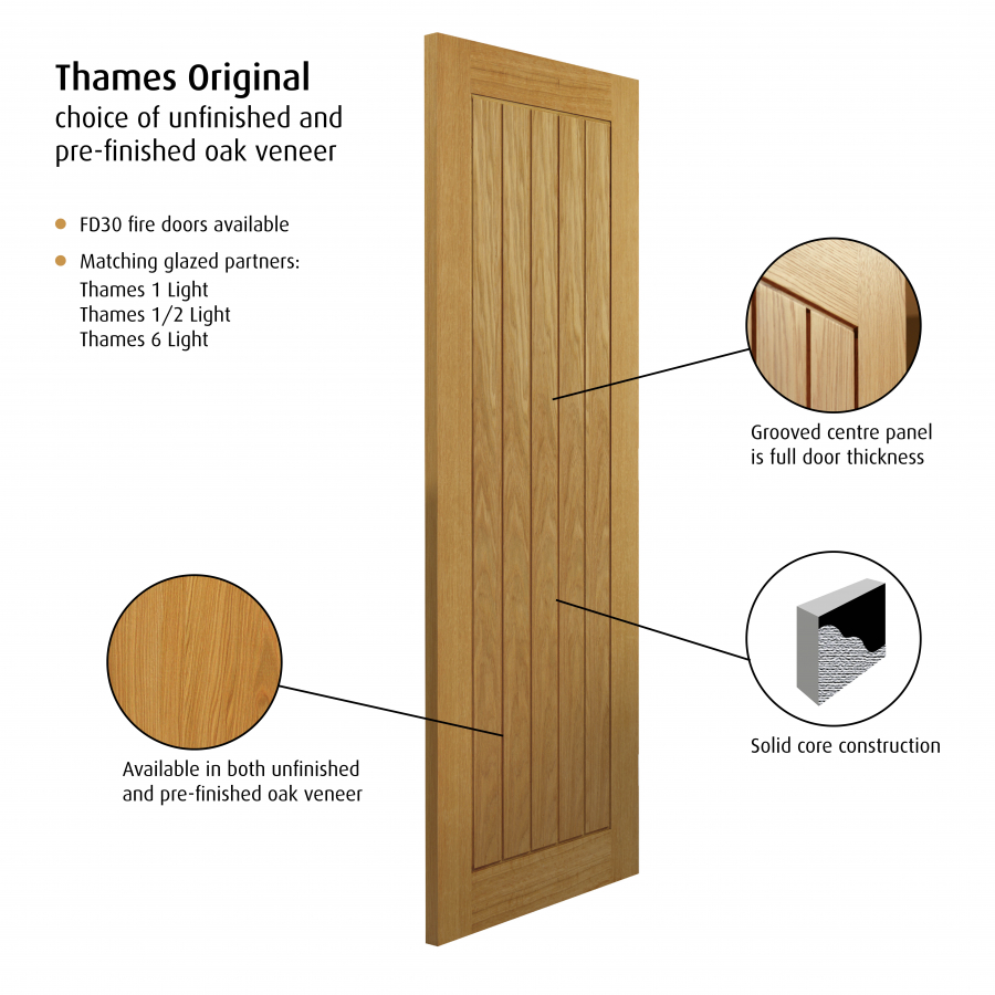 Features & Benefits: JB Kind Thames Fully Finished Oak Internal Flush Door