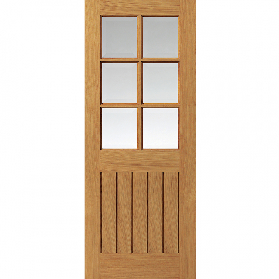 The Tutbury cottage door from JB Kind gives you all that rustic feel with contemporary lines and design. Featuring six bevelled windows of clear glazing, it's great for brightening up your home. The lower panel's five vertical lines give a strong sense of that historic cottage door. This is a great door for a barn conversion or country refurbishment project.