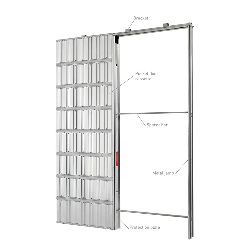 JB Kind's pocket door systems are supplied pre-assembled and are available for both single and double door situations.