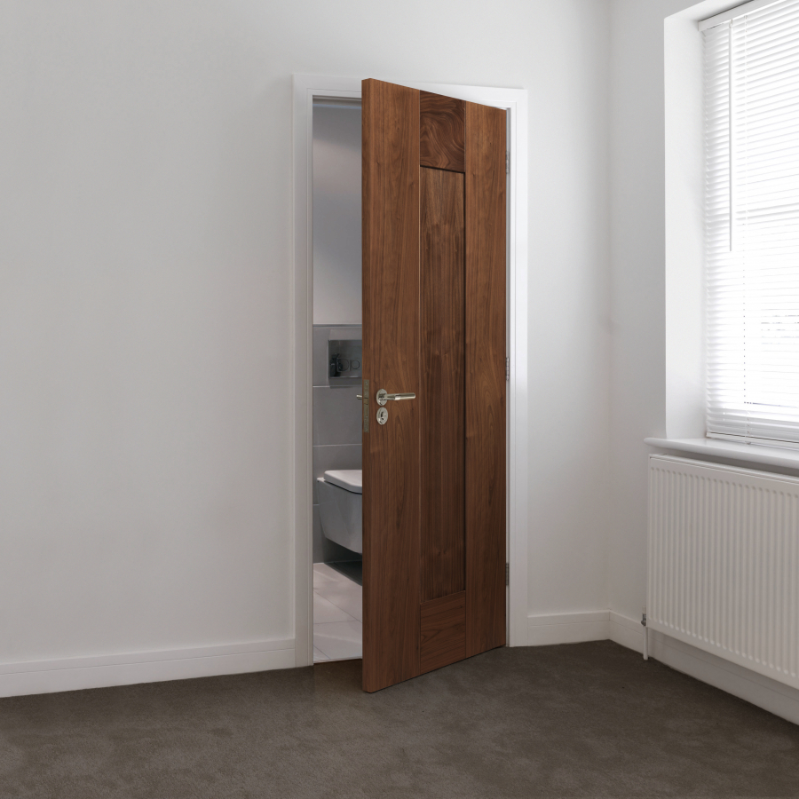 Natural Walnut and Walnut effect internal doors offer warmth and sophistication to any setting. The deep coloured wood compliments both contemporary and traditional homes.