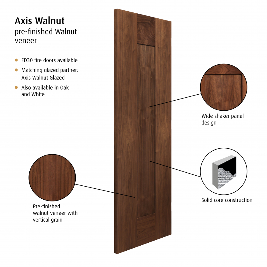 Features & Benefits: DISCON - JB Kind Axis Shaker 1 Panel Fully Finished Walnut Internal FD30 Fire Door
