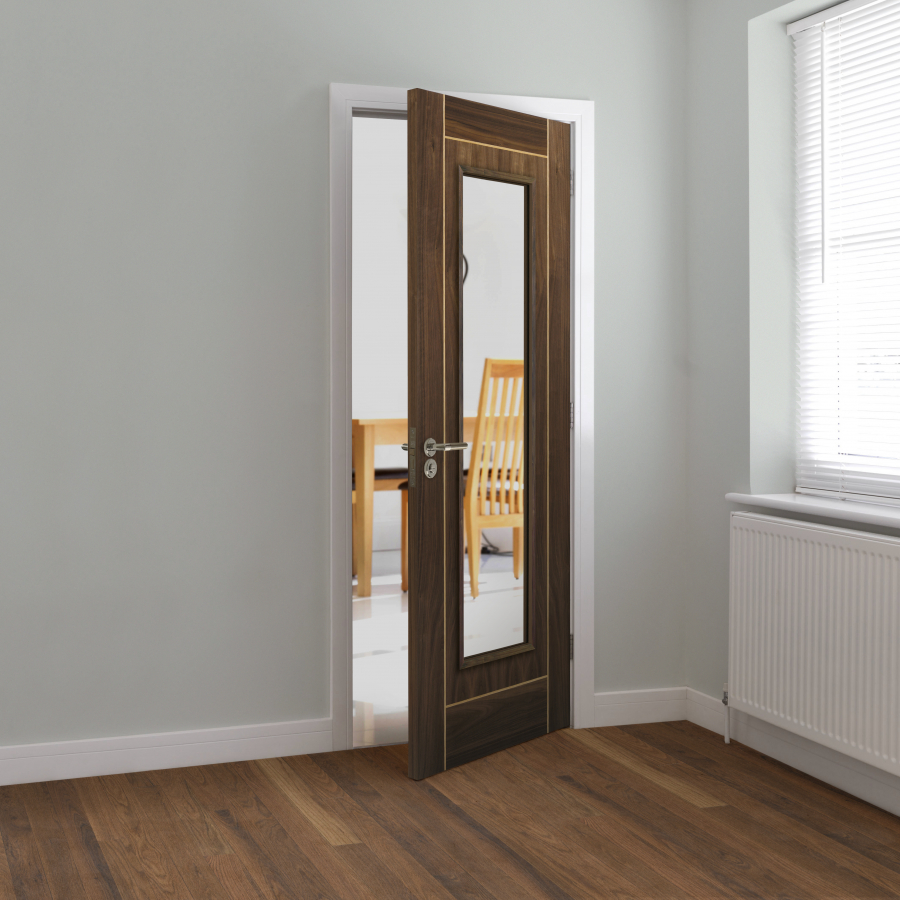 Features & Benefits: DISCON - JB Kind Valcor Fully Finished Walnut 1 Light Clear Glazed Internal Door