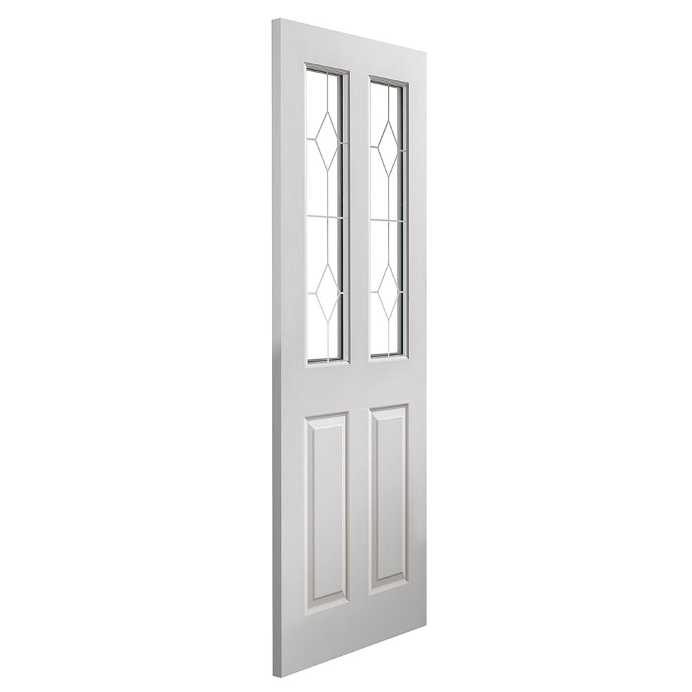 Features & Benefits: DISCON - JB Kind Canterbury Moulded Grained White Primed 2 Light Glazed Internal Door