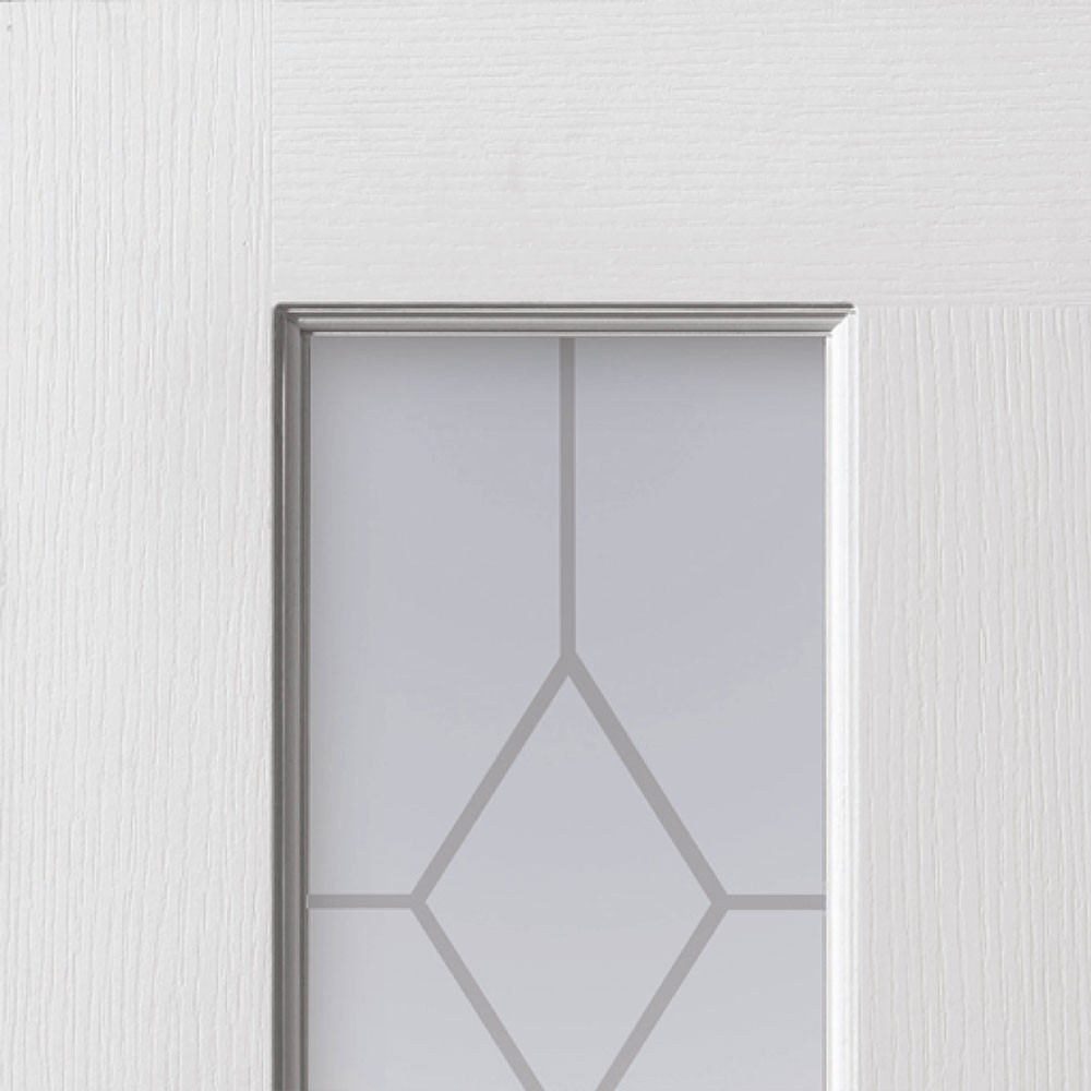The Canterbury range of interior doors from JB Kind features a traditional moulded door design that is suited to a wide range of interiors, no matter the décor and theme. This etched glazed white door is delivered primed. The Victorian style of this door makes it an excellent choice for traditional interiors.